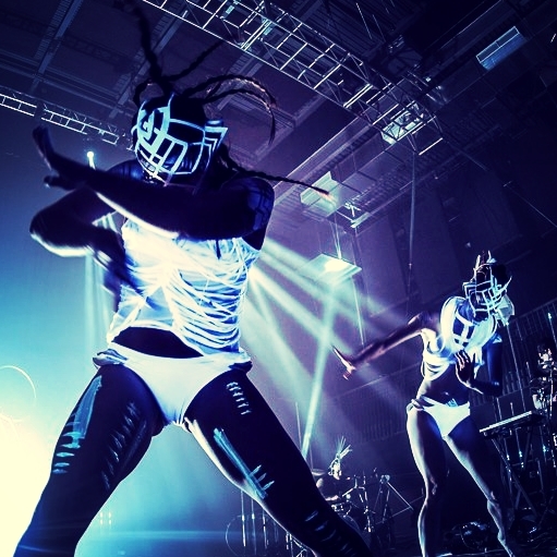 I wanted the white costumes to have more of a classic look with a futuristic touch on the skirts. I knew I wanted white costumes because the lights would look so good on them and really make them stand out.