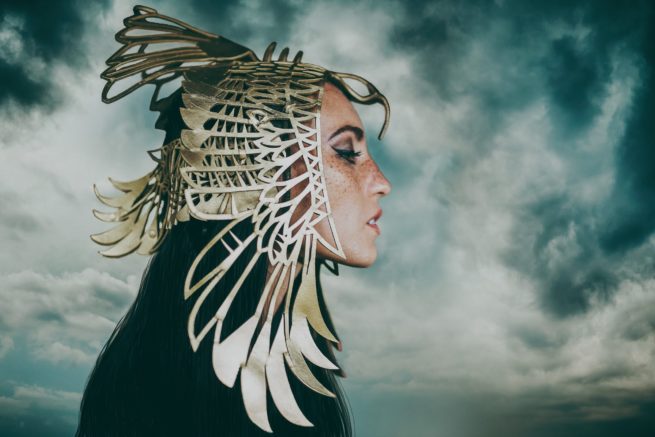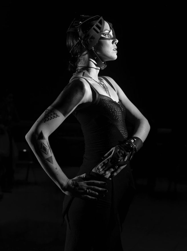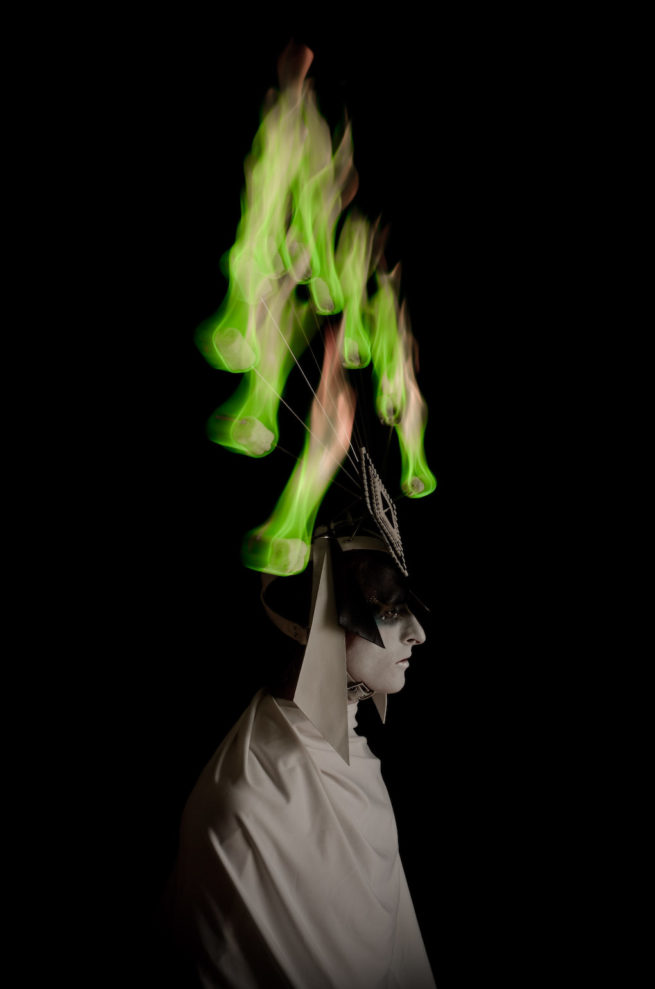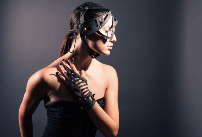 This leather headdress is made for QUIXOTIC.